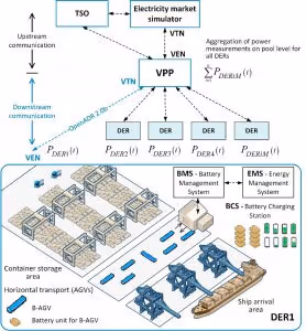 In particular, the performance of the VPP communication system utilizing OpenADR 2.0b was tested in the scope of BESIC, a completed research project run by several partners including research institutions like HHLA AG, the largest German port operator at the HHLA Container Terminal. The project investigated the dynamic charging of battery stacks for automated guided vehicles (B-AGVs) used to transport containers between ships and storage areas at the port of Hamburg, Germany, from both environmental and economic perspectives.