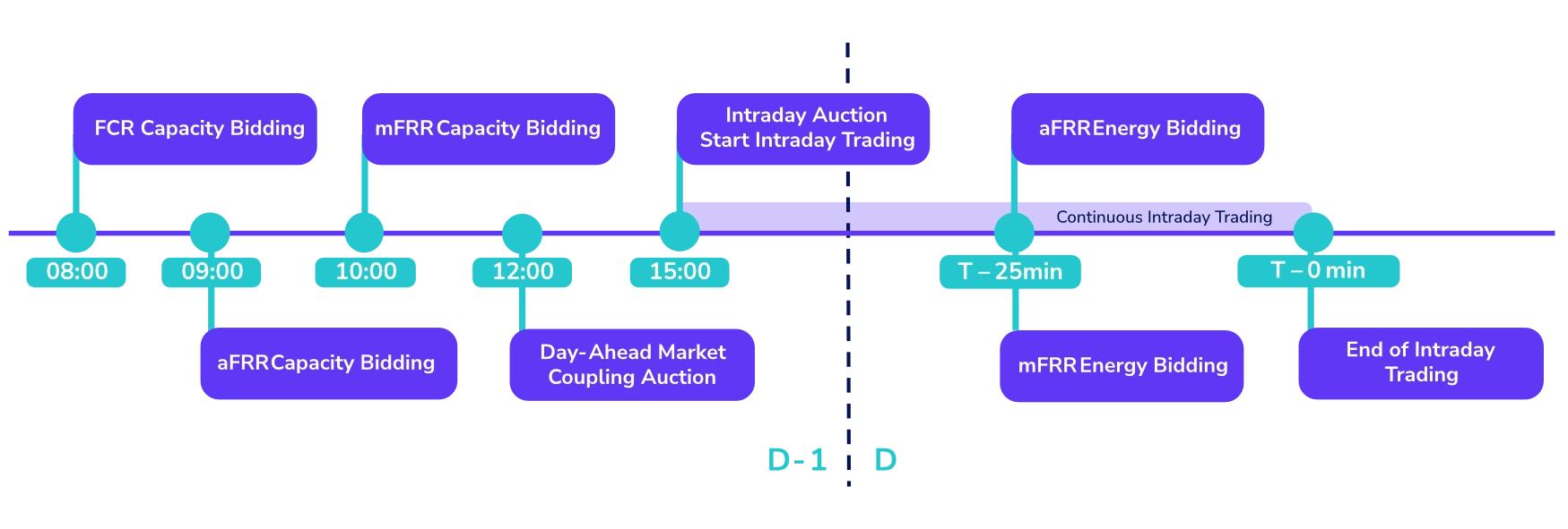 We create new revenue streams for our customers by strategically bidding across multiple markets to increase profitability. In addition to balancing services—FCR, aFRR, mFRR, RR, including Free Energy Bids and redispatch services—, assets can be monetized on the wholesale markets, including day-ahead and intraday markets.